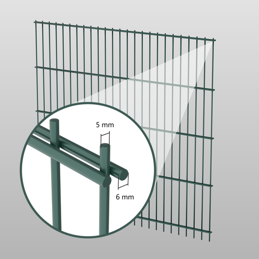 Leichte Doppelstabmatte (Zaunelement 6/5/6) - moosgrün (RAL 6005)